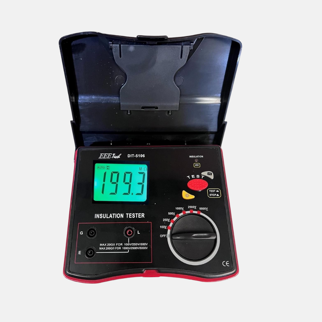 - Insulation Resistance : 0.1MΩ – 200MΩ (3% + 5 digits). 200MΩ – 10GΩ (5% + 5 digits). 10GΩ – 200GΩ + (10% + 5 digits).